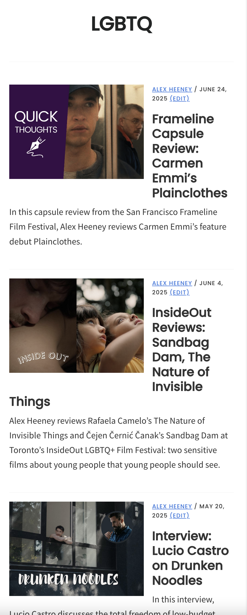 Among other things, I’ve been closely following queer world cinema for the last 15 years, at major festivals such as Cannes, Berlinale, and TIFF, as well as local LGBTQ+ festivals like Frameline (San Francisco) and InsideOut (Toronto).